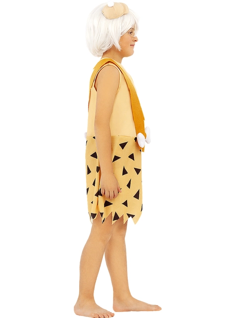 Voici le déguisement officiel de Bamm-Bamm des Pierrafeu, aucun détails ne manque. Ce déguisement de Bamm-Bamm garçon comprend une tunique courte sans manches finie en pointes et avec un triangle noir imprimé sur le bas. Comprend également un os suspendu au torse, caractéristique des tenues de Bamm-Bamm. Sans oublier la perruque blanche et courte, signe d’identité du petit Rubble.