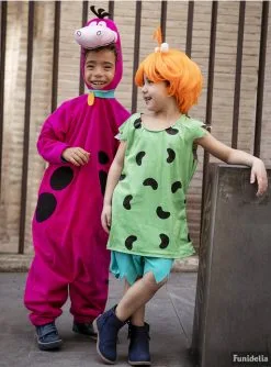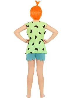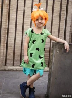 Cette robe de Pépite pour fille a tous les détails qui la rendent identique à la tenue de la petite fille de la famille Pierrafeu. Le déguisement Pépite est composé d’un t-shirt vert sans manches avec des taches noires en forme de cacahuètes et d’un short bleu clair. Mais aussi la perruque courte rose clair de Pépite , avec sa couette maintenue par un os.