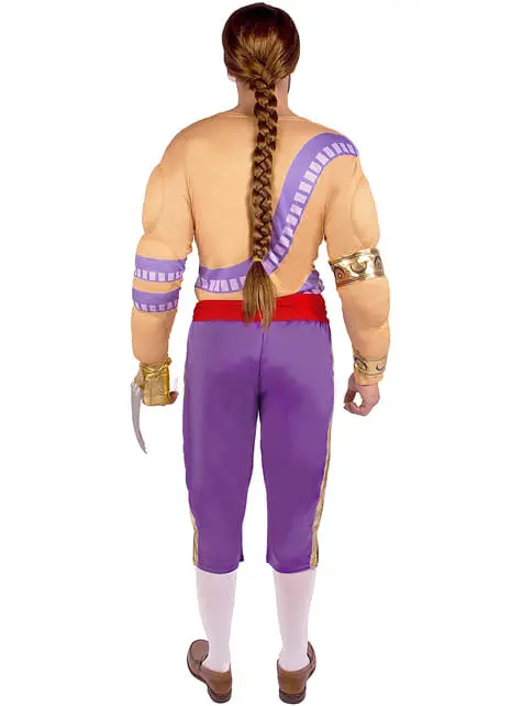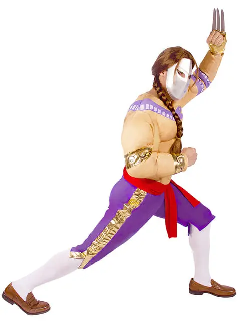 Inclus: T-shirt avec poitrine et bras musclés, ceinture, pantalon, gants avec griffe et masque.